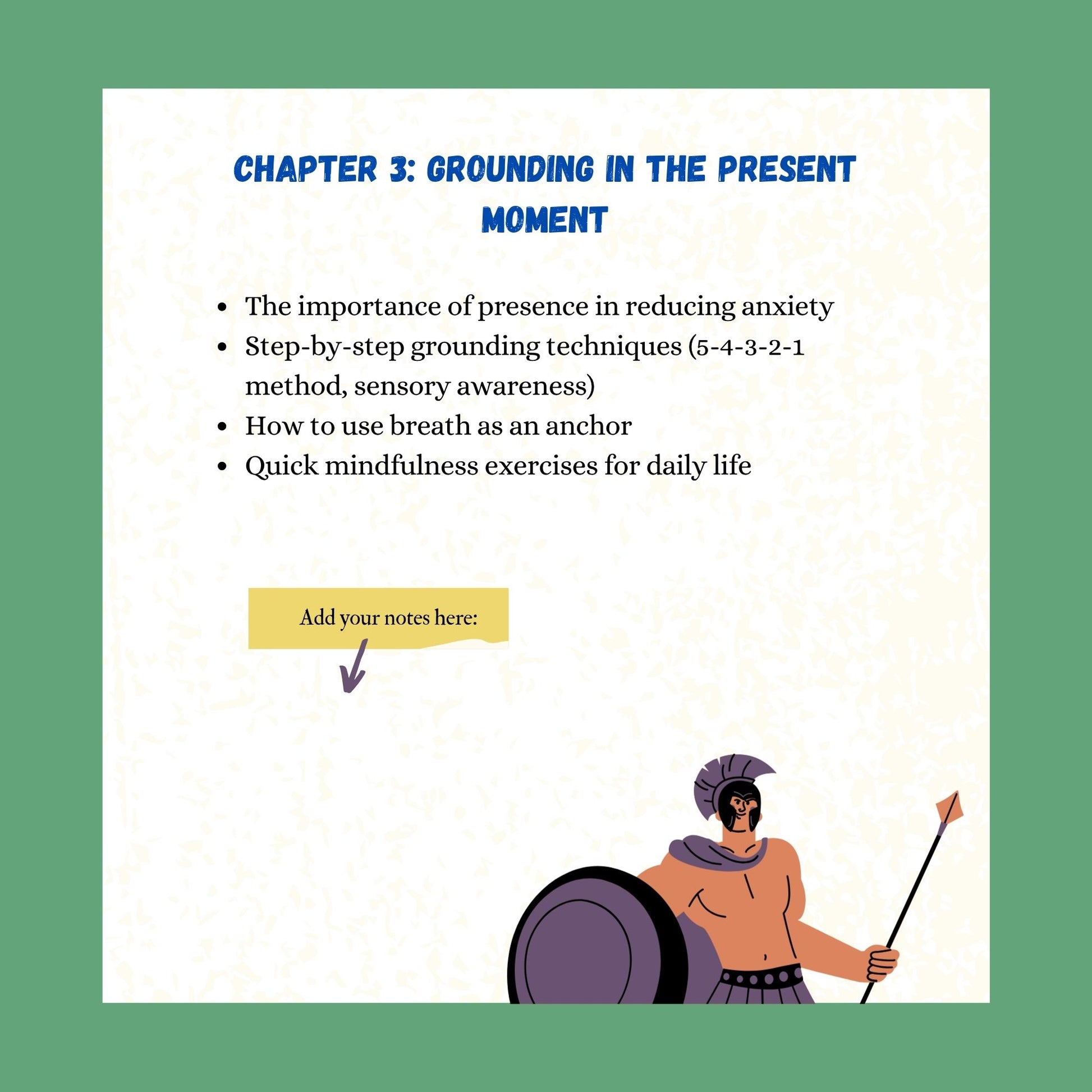 8 in-depth chapters covering mindfulness, grounding, emotional awareness, and daily calm practices